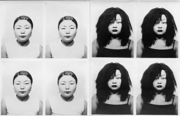 “I was bound by an inferiority complex. When I started to take pictures, I loved my image taken in photos, which looked attractive and cute. I could make myself look like a model or an actress in pictures. As I looked at my pictures again and again, the gap between my real image and my image in a picture widened. In other words, my appearance could be changed easily, but my personality did not change. An ID picture proves the identity or the existence of a person in the picture. That is, even if someone does not exist in this world, if he or she appears in an ID picture, that person can prove his or her existence. One’s personality is said to show in one’s appearance. However, even if one’s appearance changes, the essence does not change. Such a contradiction motivated me to create my work. Anyone in these ID pictures could be myself. The camera for ID pictures, that is my studio, stands inside the parking lot located along the Kobe Subway. As if it were made specially for me, there was a restroom in front of the studio. There, I continued to disguise myself as many different persons as possible, ten to twenty different characters, by wearing the clothes I brought, until the last train passed on the railway. Since it was a public restroom, other people came to use it. My works are in monochrome, so it is not so noticeable, but my make-up made me look unusual. Once a little girl came in and she froze the moment she saw me. Also, a young woman came in and instantly rushed out as if she saw something she should not have seen. I scared away many people. A guard at the parking lot was suspicious of me, and I was afraid he would report me to the police. Let me apologize to the people I encountered while photographing there”.
