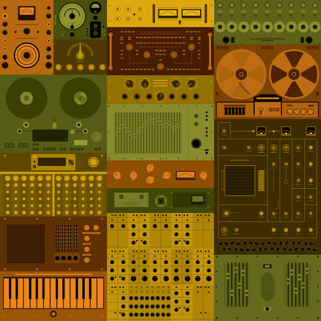 Andrew Pekler selected 300 different covers from second-hand records and, using colorful geometric elements to cover over all titles, performer’s names, and label logos, removed traces of the covers’ original contexts. The sunsets, couples in silhouette, alpine panoramas, roses on pianos, female faces in close-up, and seascapes no longer serve as the packaging for easy listening and exotica. Instead, the romantic, bizarre and intriguingly bland images of the original covers are free to lend their evocative powers to the record of new music they now house. Likewise, the principle of collage is audible in Andrew Pekler’s compositions. Here, the electronically transformed fragments of audio extracted from the original records take on a new existence as Cover Versions…from Senufo Editions. Buy here.